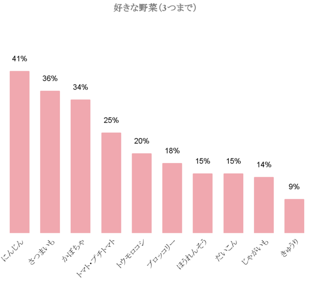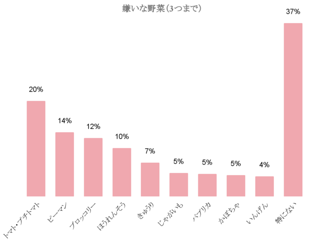 「特にない」と回答をした方が、全体の4割近くいらっしゃいました。この結果から、好き嫌いなく野菜を食べている子どもが、実際は多くいるようですね。