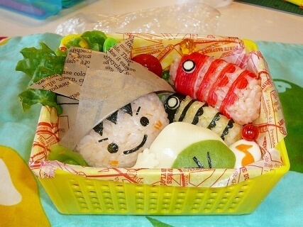 出典:ameblo.jp初心者向けの鯉のぼりおにぎり弁当です。