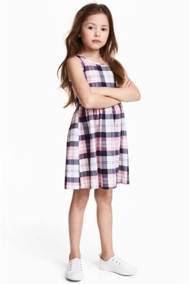 出典:www2.hm.comまるでコットン素材のようなチェック柄がかわいい、ピンク×ネイビーのパターンジャージーワンピース。柄の色味から一色合わせてコーディネイトするとおしゃれです。