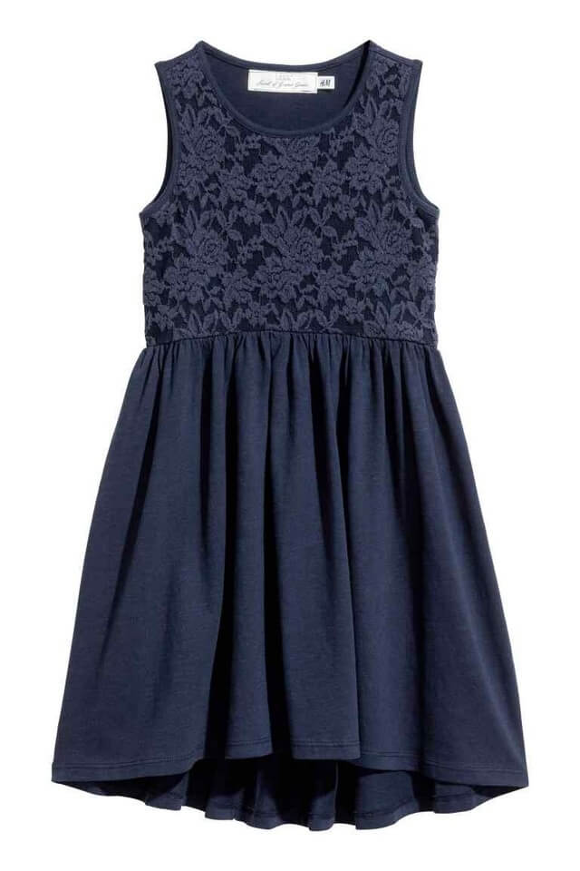 出典:www2.hm.com前みごろの上半身部分にレースモチーフのあるワンピース。ママとリンクコーデしてみるのもいいですね。ホワイトとライトピンクがあり、レース好きのママは目が輝いてしまうかも。本物レースではなくてTシャツ素材のレースなので、洗濯などの扱いも楽ですよ。