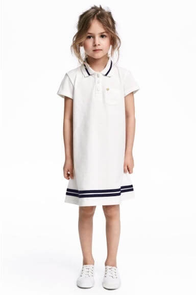 出典:www2.hm.com元気いっぱいのな印象がかわいい「ポロシャツ」。それをそのまま長くしたような、半袖ピケワンピースです。こちらは、男の子のご兄弟とのリンクコーデにもお役立ちのアイテムです。