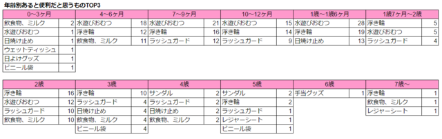 - ▼月齢別、年齢別でみる!あると便利だと思うものTOP3