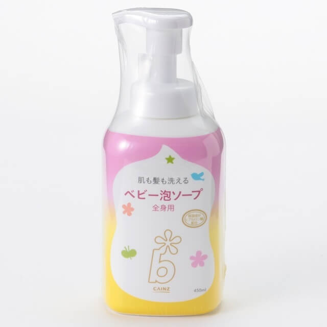 出典:www.cainz.com見た目は少量のように見えますが、実は450mlも入っている、「泡タイプ」のベビーソープです。毎日のボディーソープは、片手でプッシュできる「泡タイプ」が便利ですね。でも、泡のボディーソープはちょっと高めになります。