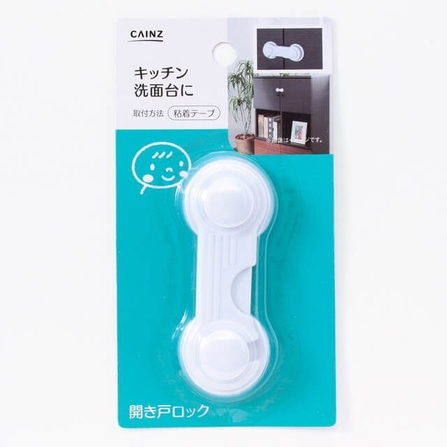 出典:www.cainz.comカインズオリジナルのベビーの安全用品は、写真のキャビネットロックをはじめとして、バリエーションが豊富なのも魅力です。同じシリーズに引き出しロック、コーナーガード、マルチストッパー、マルチロック、コンセントキャップなどがあります。