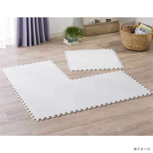 出典:www.cainz.comカインズでは、ジョイントマットも販売しています。写真は白で58センチ×58センチの大判のマットです。4枚セットで980円です。カラーは他に、ピンク・グリーン・ブルーの全4種類です。