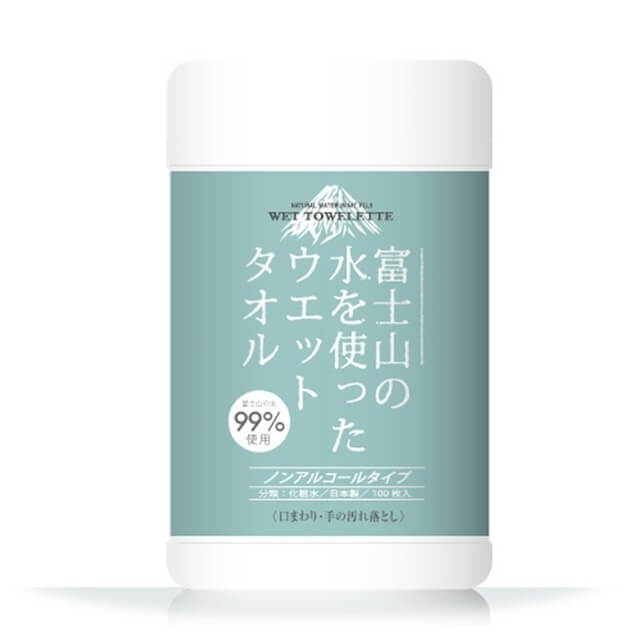 出典:www.cainz.com「富士山の水を使った」というウェットタオルもあります。厚手の不織布、ノンアルコールタイプで、富士山の水99%使用しています。アルコールタイプだと刺激が強すぎる赤ちゃんでも、お手ふきなどとして使えます。