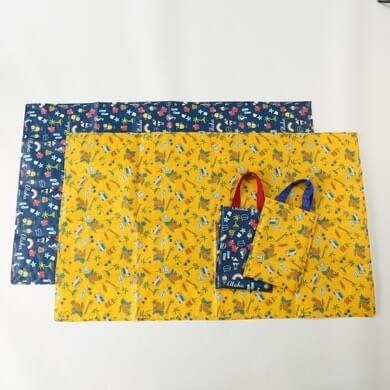 こちらも500円商品です。ポップな果物のイラストで、元気いっぱい遊べそうです。色違いにブルーもありますよ。