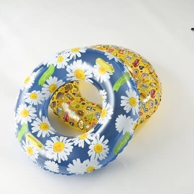 こちらは爽やかなブルー地に白い花が描かれた模様です。プチプラ商品のうれしいところは、家族分もまとめて揃えやすいところではないでしょうか?子どもたちはもちろんのこと、パパママも浮き輪が欲しい人がいるなら、一緒にゲットしてみてはいかがですか?