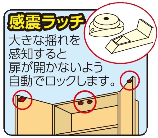 観音開きの扉には、感震ラッチ等の扉開放防止器具を!