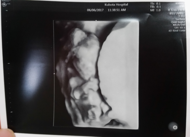 すでに私の体調悪さは悪阻が始まっていたようで先生はエコー写真を3Dで撮って下さいました。小さいながら人間の形をしているお腹の中の赤ちゃんに感動して涙が止まらなかったです。その時のエコー写真です。