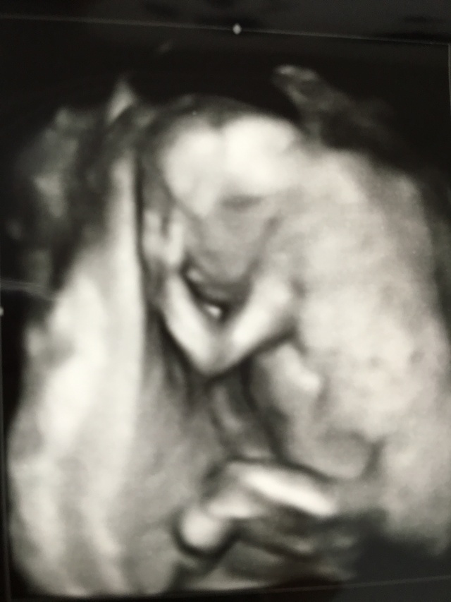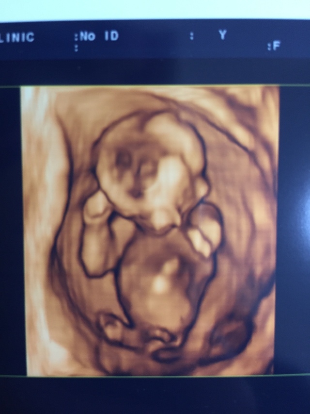 この3D?4D?写真が赤ちゃんをちゃんと写せた最初で最後の写真。その後からはずっと顔の前に手があったり、隙間が無くて3D?4D?写真を撮ってもらえなかった。