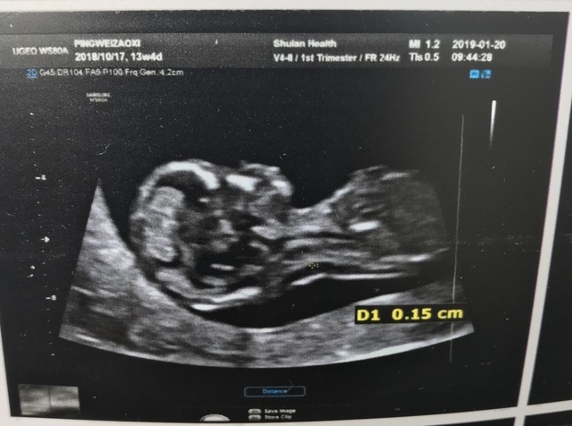 13週のエコー写真では、初めて超音波エコーによって顔・首・体が見えて感動しました。人間らしい形を見ることで、赤ちゃんを妊娠している実感が湧きました。生理不順だった為、赤ちゃんは少し小さいようです。これから、しっかり栄養を摂って赤ちゃんに大きくなってもらいたいです。