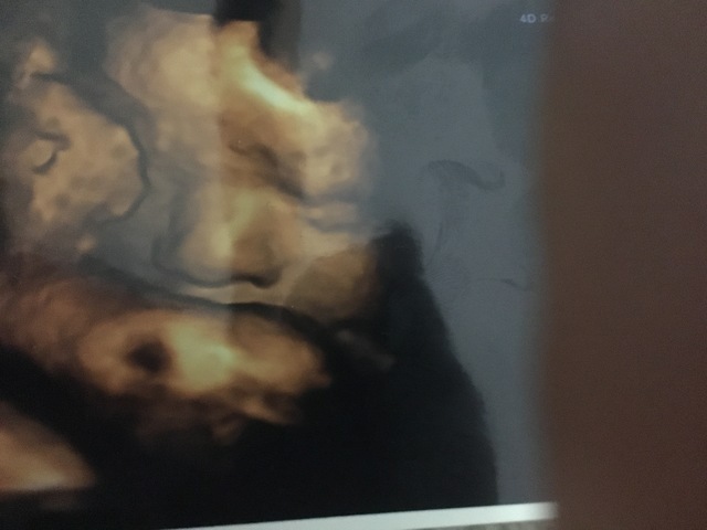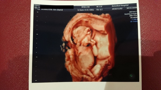 安定期に入って初めての4Dエコー。カラーの立体で見えて、今までエイリアンで見えていた我が子がとてもとてもかわいく感じました。