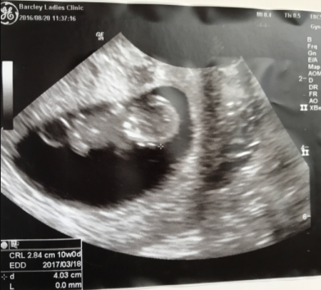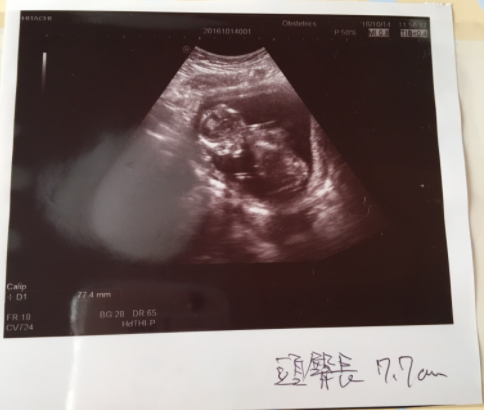 この時、本当に激痛の腹痛が数日続き、前回の妊娠で流産した事が脳裏をよぎり、やっとの事で健診日まで堪えて撮った写真です。