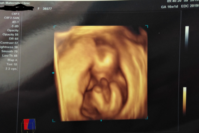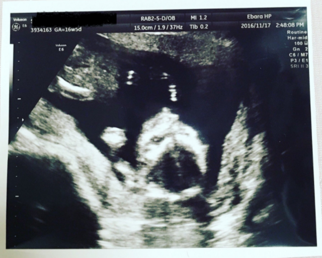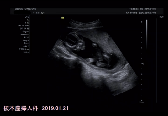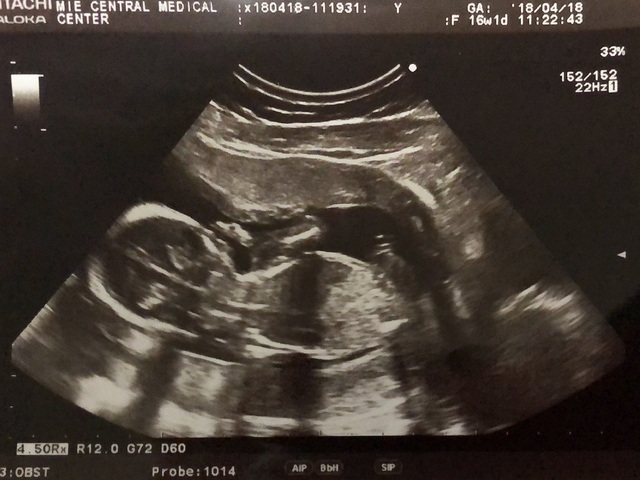 つわりが長く16週でやっと落ち着いてきた頃でした。辛いつわりのなか、4Dエコーで赤ちゃんを見れるのだけが楽しみでした。エコーで性別がわかったのもこの頃。