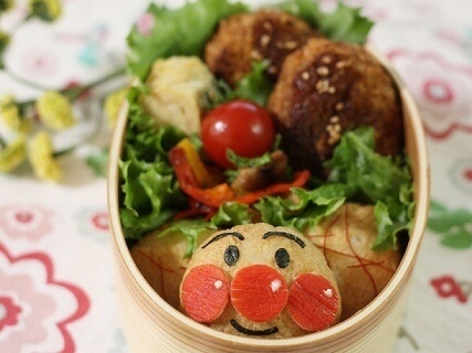 6.最後に、アンパンマンのカニカマ赤部分にマヨネーズを少しつけて照りを入れれば出来上がりです。
