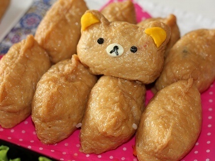 一口サイズのミニおいなりさんは100均でも手に入ります。アンパンマンやリラックマは、おいなりさんの茶色をそのままキャラの色として使えます。