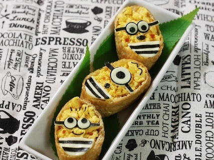 出典:ameblo.jp卵そぼろの黄色も鮮やかなミニオンのミニいなり寿司です。
