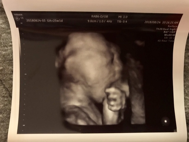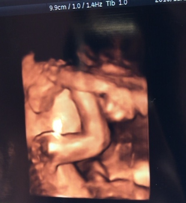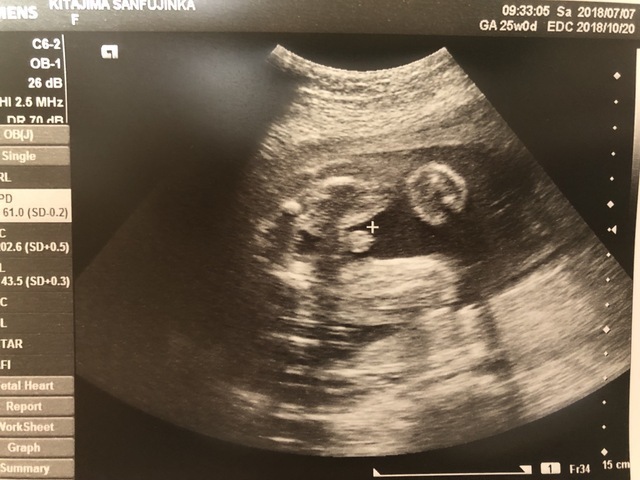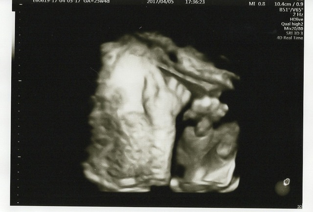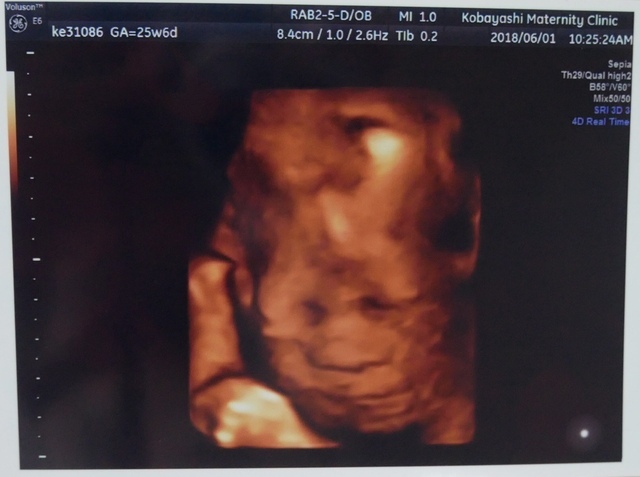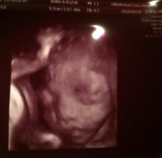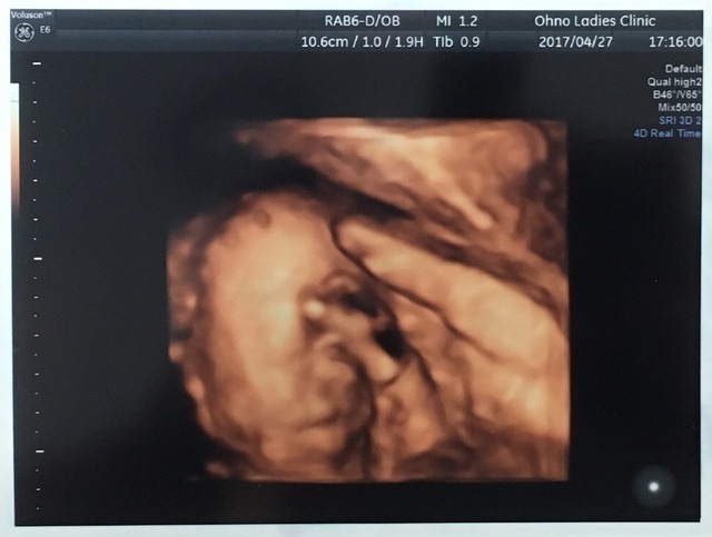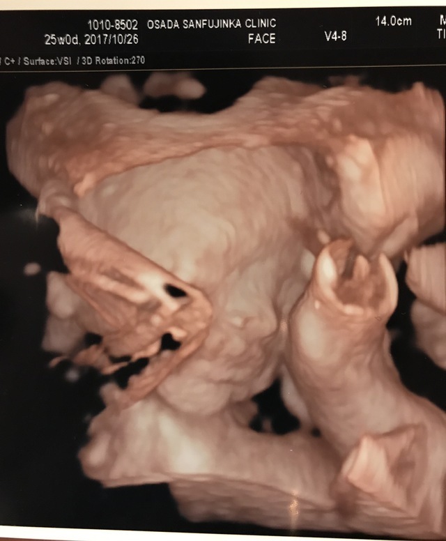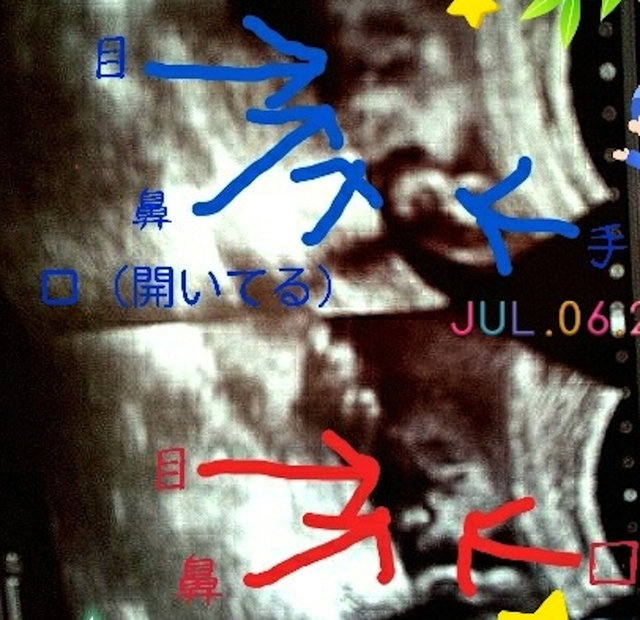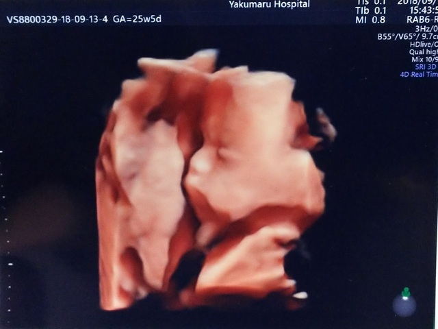 この日初めてお顔をしっかり見せてくれました。それまでは手で隠したり、反対向いていたりで、なかなか見れなかったんですがやっと見せてくれました。見せてくれたお顔はお兄ちゃんそっくりで、パパと驚きました。どれくらい似ているのか産まれるのが楽しみです。