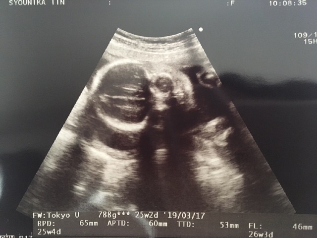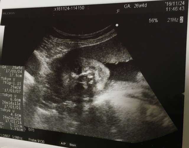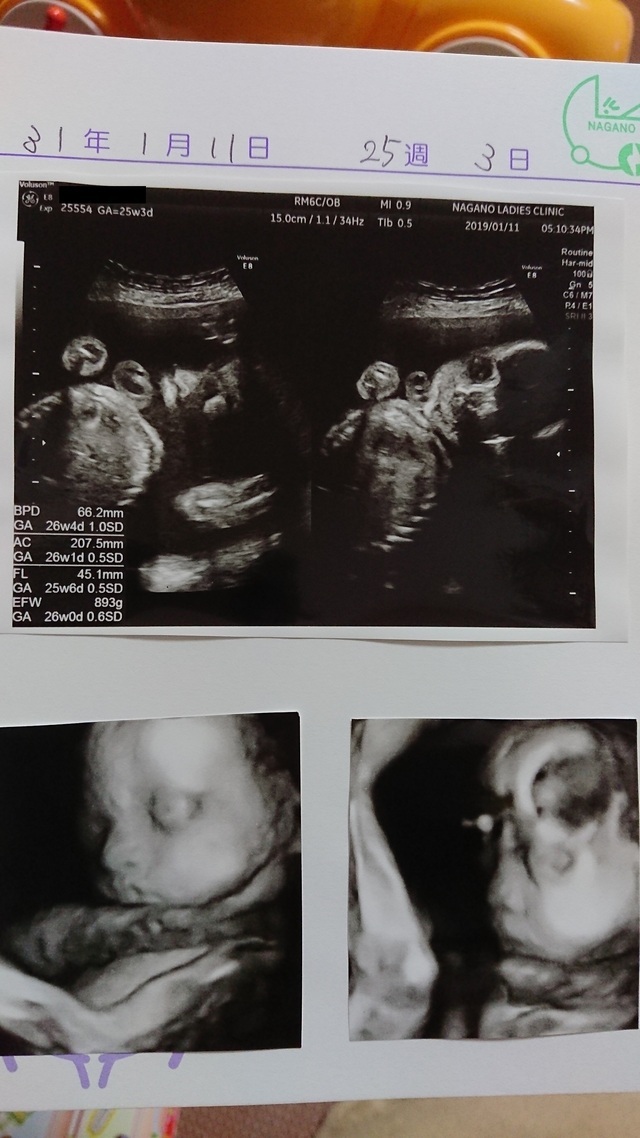 パパや家族みんなに見せて、私の父からは骸骨やんって言われちゃいました。(笑)25週でもうしっかり顔が出来てるのですごいなあと思いました!