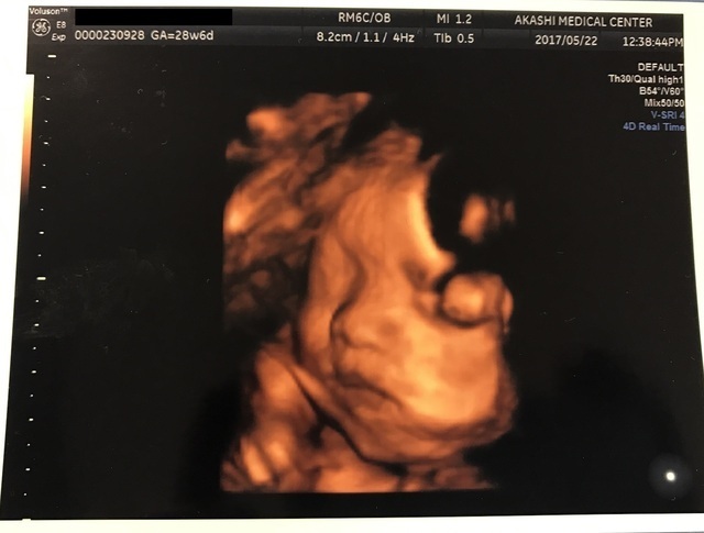 私が通っている病院は4Dがないので、他院の妊婦さんを4Dで受け付けている別の病院に、21週、25週、28週で通いました。こんなにリアルなお顔が見れてパパと感動して、ますます愛おしさが増しました。