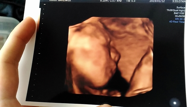 はっきりと顔立ちが分かって感動したしかわいいと思い、改めてお腹に赤ちゃんがいるという実感が湧いた。過去に死産したことがあるので顔が見れてとても安心した。