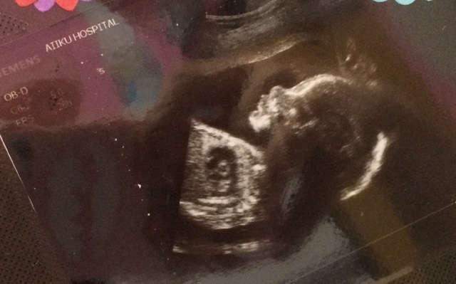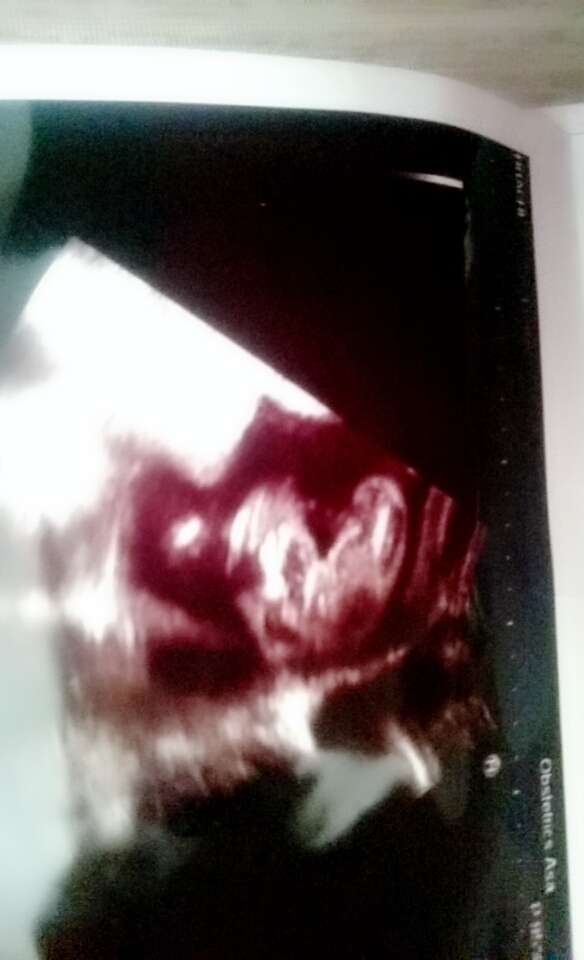 横顔だけど、初めてしっかりエコー写真に写ってくれたため。それまでは顔を隠したりでほとんど写らず(笑)
