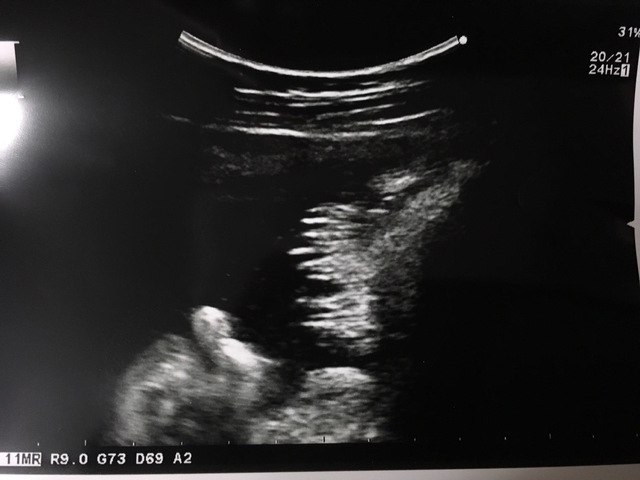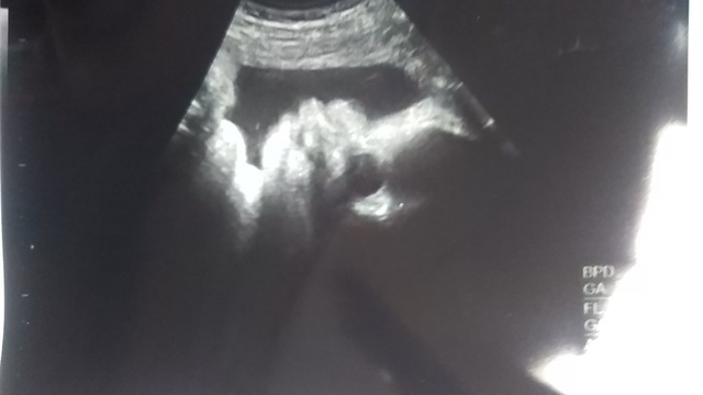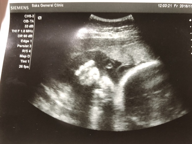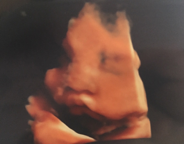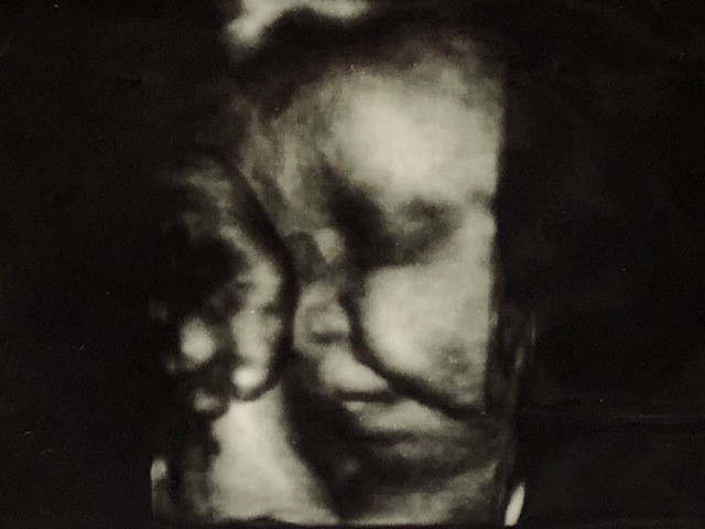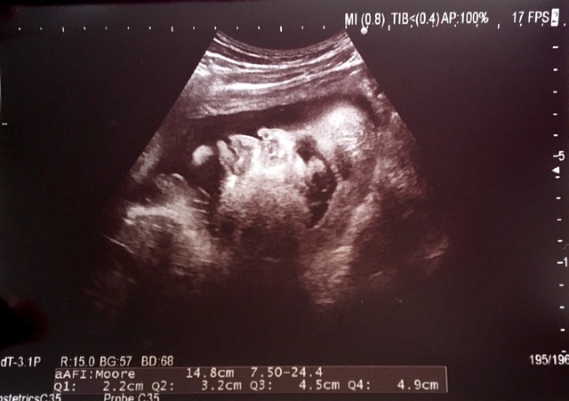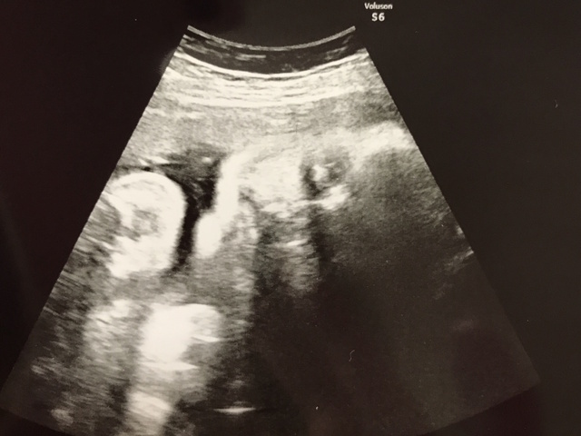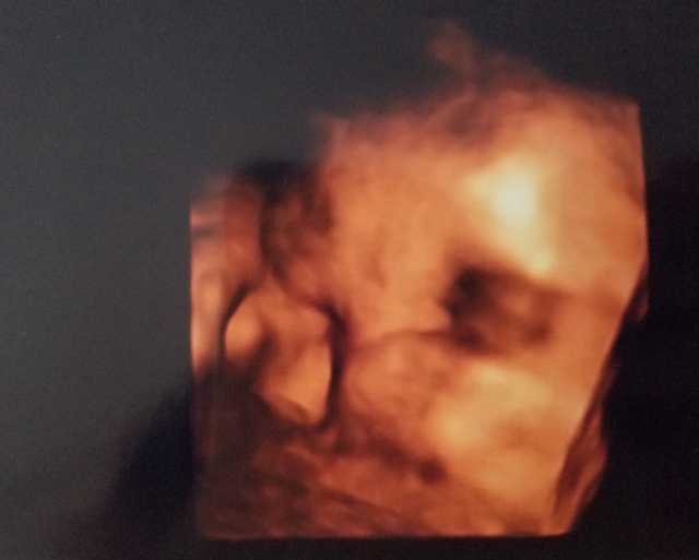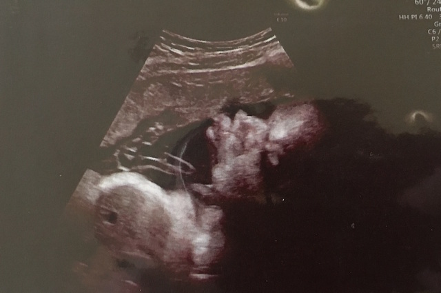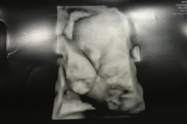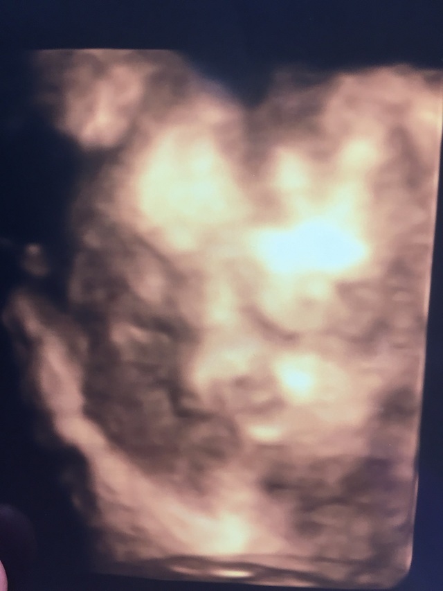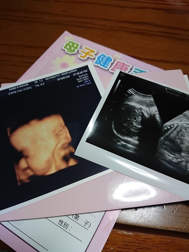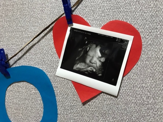 この写真を撮った日もお医者さんはなんとか顔が見えるようにと、様々な角度からお腹にエコーを当てて画面に映し出してくれましたが、結局見せてくれず......。