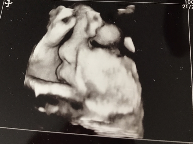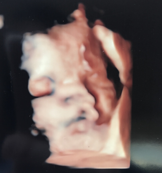 口がニュッと出ているのが面白かった。二番目の子なので、上の子の時よりもエコーの見方も分かっていたので、楽しむことが出来た。パパは上の子もこの子もエコーだとどこがどこだか全く分からなかったらしい(笑)なので、毎回写真を撮った後、顔の輪郭とかをマークアップして送っていた。