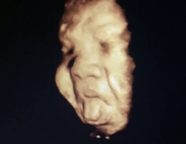 顔がなんとなくわかるようになった時の写真で、産まれたらそのままの顔でビックリしました。
