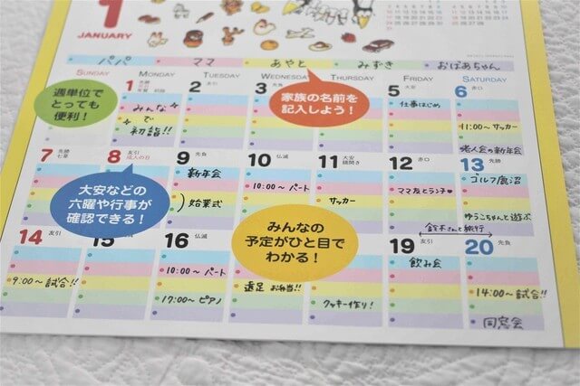 昔に比べてキャラクターのファミリーカレンダーも増えてきたので、探してみるとお気に入りを見つけられるかもしれませんよ!