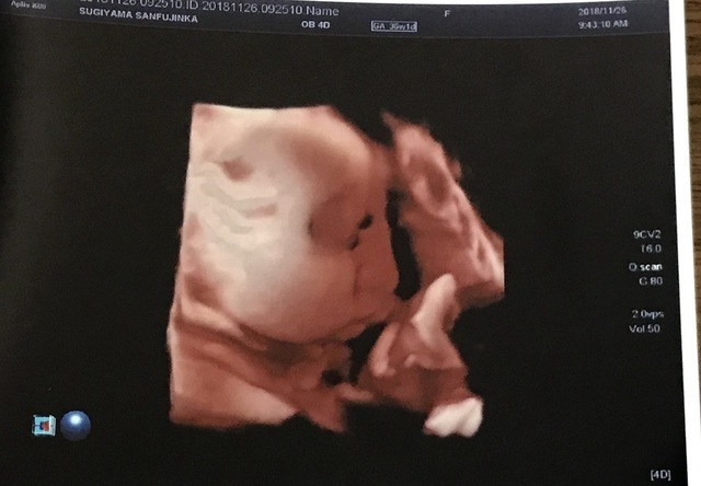 ぷくぷく太っていてしっかり赤ちゃんの顔で、はやく会いたいという気持ちが更に大きくなりました。2年半でやっと来てくれた赤ちゃん。元気に産まれて来てね♡