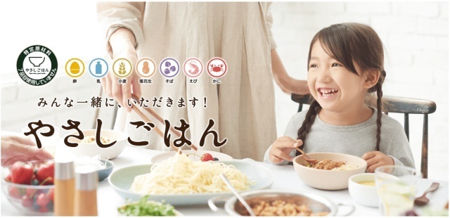 やさしごはんシリーズは卵・乳・小麦・落花生・そば・えび・かにの特定原材料7品目を使用しておらず、家族みんなが安心して食べられるカラダにやさしい食事です。