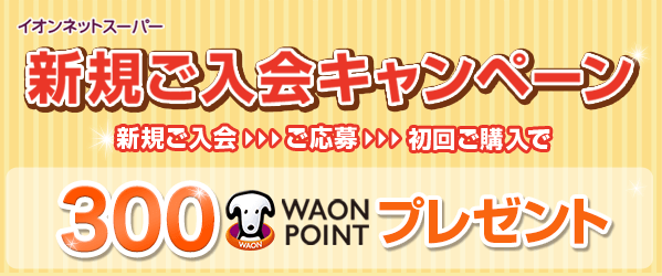 新規ご入会キャンペーンに応募して、イオンネットスーパーでお買い物をすると300 WAON POINTをプレゼント!