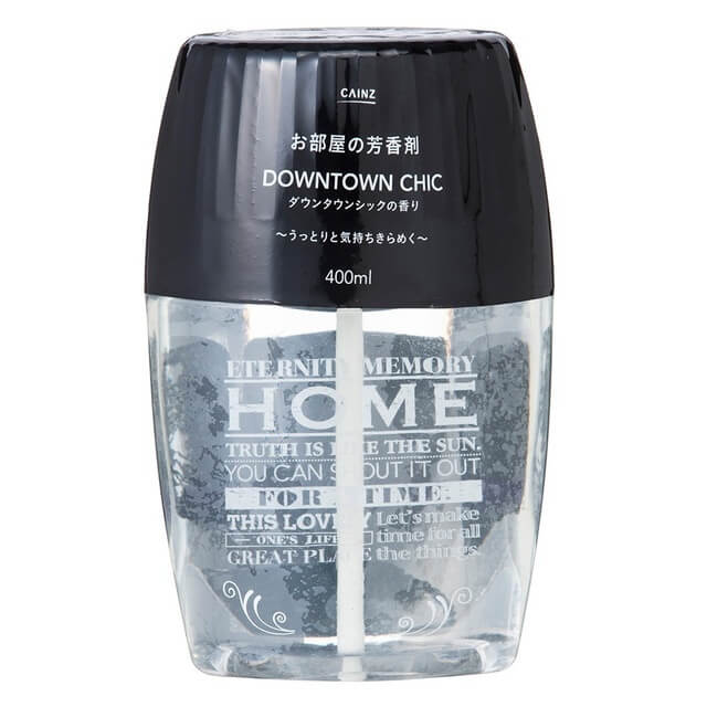 出典:www.cainz.comお部屋の芳香剤は大きめサイズ400mlの置き型です。ダウンタウンシックは、黒の蓋に白い文字がおしゃれです。「HOME」の文字が透けて見えて見えるのも素敵です。