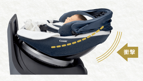 出典:www.combi.co.jp※もしもの衝撃を背中で受けられる角度で、赤ちゃんの快適性に配慮して可能な限りシートを寝かせた形状。設置する車のシート形状により、実際の装着状態・角度などが写真と異なる場合がございます。