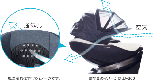 ISOFIX800タイプには、電動式の“すーすーファン”もついているので暑がりの赤ちゃんにおすすめです。