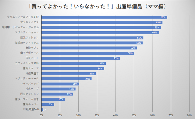 - ▼いらなかった!3位(同率) マザーズバッグ、母子手帳ケース、産褥ニッパー、カフェインレス飲料