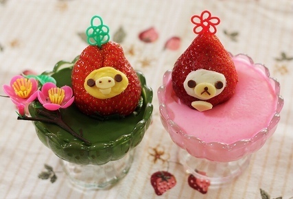 いちごとチョコレートで作ったコリラックマとキイロイトリをひな祭り風にアレンジ。