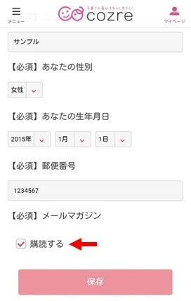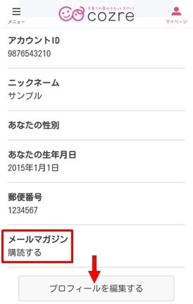 WEBブラウザの場合手順1:赤矢印部「プロフィールを編集する」を押してください。※赤枠部に現在のメルマガ配信設定が表示されています。手順2:赤矢印部のチェックを入れる/はずすことで、配信設定を変更できます。その後「保存」を押すと変更が完了します。アプリの場合手順1:赤矢印部「メルマガを受信」のボタンを操作することで配信設定を変更できます。その後左上矢印からページを移動することで変更が完了します。※ボタンがピンク色になっている場合「購読する」、グレーになっている場合「購読しない」設定になっています。 マガジン編集部さんの関連リンク 【随時更新】コズレプレゼントキャンペーンまとめ!ママ・子どもに嬉しい豪華賞品無料会員登録をして子育ての達人に! ・掲載内容や連絡先等は、現在と異なる場合があります。・表示価格は、改正前の消費税率で掲載されている場合があります。ご了承ください。 関連記事 メールアドレスの変更方法 マガジン編集部 よくある質問 マガジン編集部 登録情報の確認・変更方法 マガジン編集部 関連するキーワード