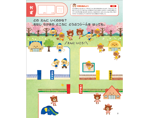 こちらは、2~3歳児対象の教材「ももちゃん」の教材から。