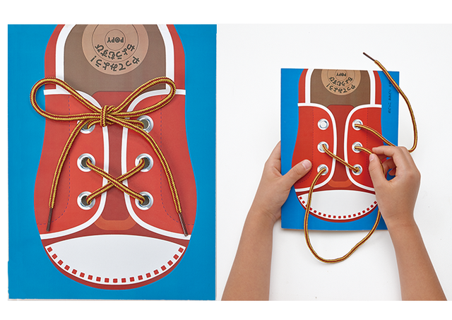 本物の靴ひもを通す練習ができる教材で、蝶結びの練習ができます!