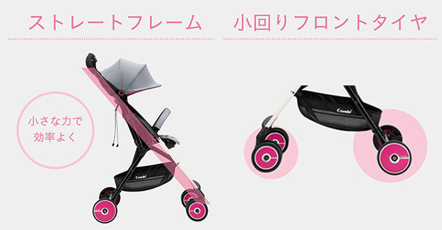出典:www.combi.co.jp片手での操作がしやすい秘密はフレームやタイヤにも!
