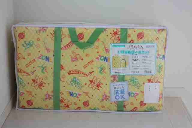 *【サイズ】 掛布団カバー:80×110cm 掛布団本体:79×109cm 敷布団カバー:69×122cm 敷布団本体(固わたタイプ):67×120cm(厚み:約2cm) まくらカバー:26×38cm まくら本体:23×35cm キルトバッグ(ひもタイプ):42×70×14cm *表示サイズは実物と多少差が出る場合がございます。 ※掛布団本体・バッグの表記サイズはキルティング製許容範囲+5%・-3%) 【素材】 掛布団カバー:ポリエステル80%、綿20% 掛布団本体:側生地、中綿:ポリエステル100% 敷布団カバー:ポリエステル80%、綿20% 敷布団本体:側生地:ポリプロピレン100% 中綿:ポリエステル100% まくらカバー:ポリエステル80%、綿20% まくら本体:側生地、中綿:ポリエステル100% キルトバッグ:表側:ポリエステル80%、綿20% 中綿:ポリエステル100% 裏側:ポリプロピレン100% 【洗濯表示】 掛布団カバー:洗濯可能 掛布団本体:洗濯可能(ネット使用) 敷布団カバー:洗濯可能 敷布団本体:洗濯不可 まくらカバー:洗濯可能 まくら本体:手洗い可能 キルトバッグ:手洗い可能 ・短時間の睡眠に適しています ・カバーはファスナータイプ ・カバー類はすでにセットされた状態でのお届けになります ・掛けふとんカバー・敷きふとんカバーの裏側白色無地 ・名前スペース付き! ※新生児の睡眠、うつ伏せでの使用不可 ※ 商品パッケージ内に価格記載あり ・中国製 [4523665020207]『注意事項:モニターの発色の具合によって、実際のものと色が異なる場合がございます。』