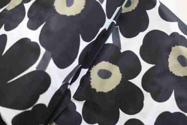 テキスタイルの鮮やかさ、デザインの独特さが人気で、写真の花をモチーフにしたUnikko(ウニッコ)と呼ばれるデザインは、ブランドでも1、2位を争うほどの人気の定番柄です。赤、黄色、グリーン、青の色違いもあり、カフェやレストランでこの柄のマグカップなどの食器を見たことがある人もいるはずです。