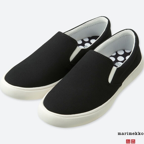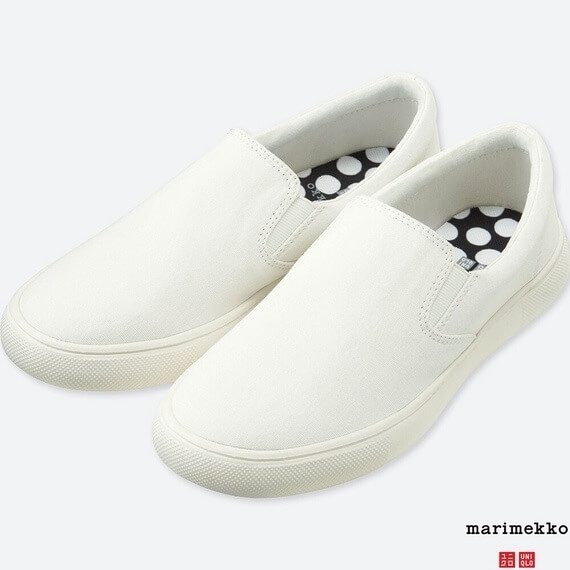 出典:www.uniqlo.com汚れやすいホワイトこそ、ユニクロのファストファッションで取り入れたいもの。価格は1990円+税なので、普通の靴を買う予算でマリメッコ商品を買えるなんてうれしい限り!普段履きとして取り入れられますね。子どもと一緒に公園遊びをする時に使えるスリッポンです。
