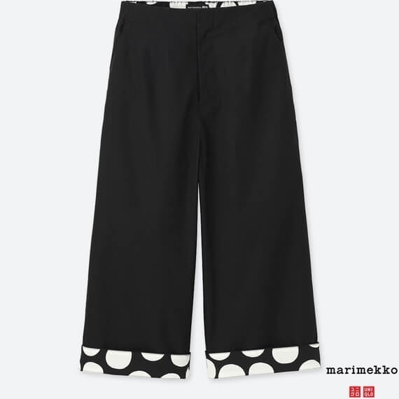 出典:www.uniqlo.com一見、普通の黒いパンツかと思うと、折り返しがドット模様。モードな雰囲気もあるパンツです。トップスを白や黒の半袖Tシャツにして合わせるとモノトーンコーデが完成し、折り返し部分を強調して履くことができます。