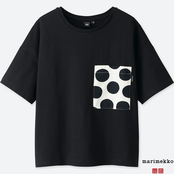出典:www.uniqlo.com黒い生地に胸元はドットのテキスタイル。コンサバ派にも取り入れやすいのが、こういったモノトーンのグラフィックTです。デニムやチノパンと合わせて元気に親子で公園遊びもいいですし、デニムスカートにレギンスも合いそうです。