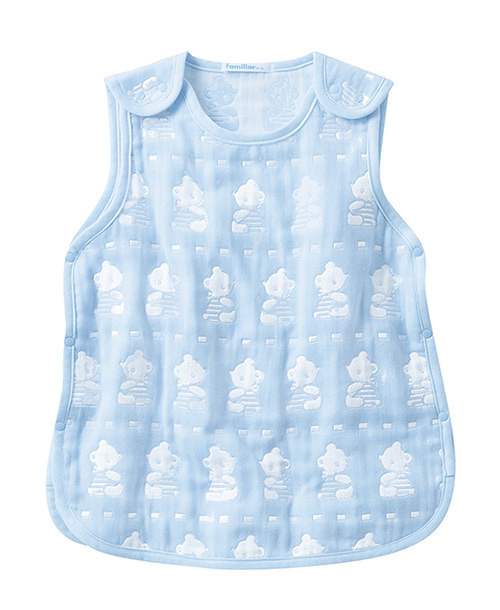 出典:www.ec.familiar.co.jpベビー用品で人気のファミリアのスリーパーは、くまの模様がかわいい6層ガーゼでできていて、安心の日本製です。両肩と両脇にスナップがついた使いやすいデザインになっていて、洗濯すると空気を含んでさらにふわっと柔らかくなります。
