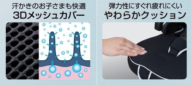 どちらのタイプで使用しても、しっかりと頭を保護してくれる大型ヘッドレスト、ショルダーサポートが調整できますので、安全性はしっかり確保できます。